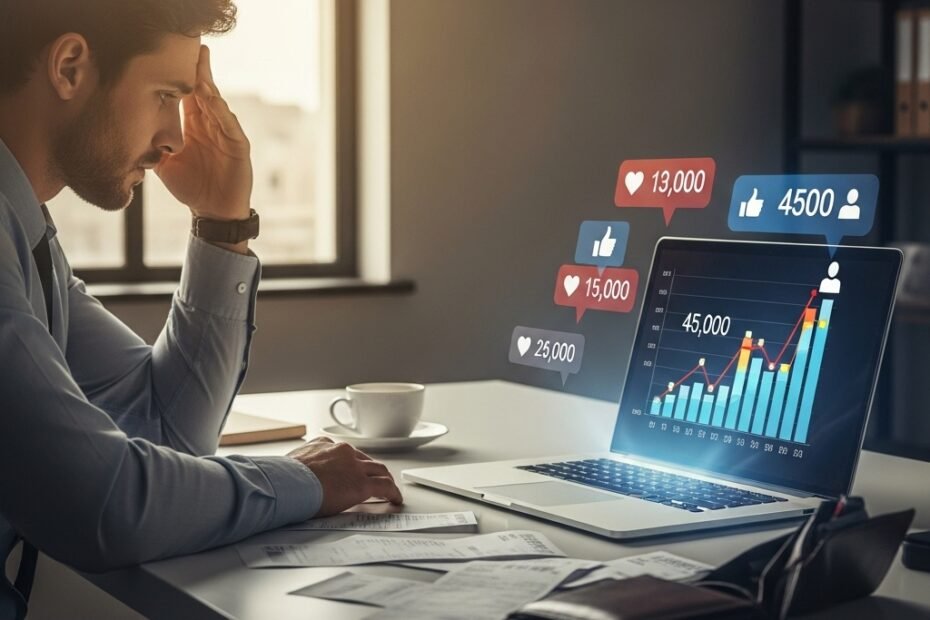 (O Por Qué Tus 10,000 Likes No Pagan el Café) ¿Alguna vez te has sentido como un millonario… de likes? Ahí estás tú, mirando tu dashboard con esa sonrisa de oreja a oreja. 15,000 seguidoresMétricas que Importan: El Manual del ROI